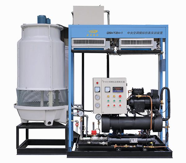 中央空調模擬實訓設備是真實樓宇中央空調系統微縮的教學設備,整套實訓設備可演示夏季制冷循環和冬季制熱循環。這套實訓系統,從結構上分為實訓平臺和中央空調模型系統兩部分。